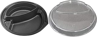中央化学 使い捨て カレー 皿 容器 テイクアウト ランチ 弁当 日本製 レンジ可 CT-OJランチ 本体 黒 50枚入 直径23.5×4.8cm & 使い捨て カレー 皿 容器 テイクアウト ランチ 弁当 日本製 CT-OJランチ 蓋 50枚入 直径22.2×2.3cm【セット買い】