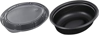 中央化学 使い捨て 容器 テイクアウト ランチ 弁当 日本製 レンジ可 SDビストロ 楕円 蓋 50枚入 約19.2×15.2×2.5cm M20-16 & 使い捨て 容器 テイクアウト ランチ 弁当 日本製 レンジ可 SDビストロ 楕円 本体 黒 50枚入 約20×16×6cm M20-16深【セット買い】