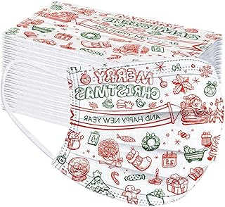 マスク 50枚入 使い捨てマスク 大人用マスク 2021新年マスク サンタクロース 雪柄 クリスマス マスク 新年マスク 織布マスク 飛沫 防塵 風邪 花粉対策 快適マスク 三層構造 高密度フィルター 花柄マスク 通学 通勤 男女兼用 プレゼント (50枚入 12#)