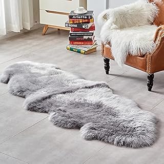 高級ムートンラグ 2匹サイズ ムートンフリース ニュージーランド原皮 長毛 在宅 エアコン 巣ごもり毛皮 マット ソファー カーペット ファー ソファー 羊 もこもこ 毛皮ラグ 敷物 クッション (シルバーグレー, 2匹)
