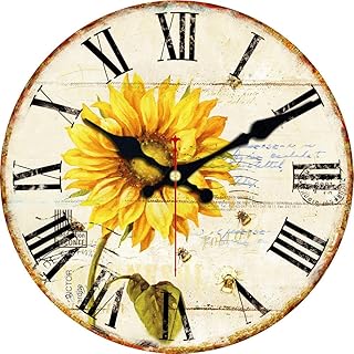 ShuaXin 木製フラワースタイル 大きな14インチ 壁掛け時計 ホームインテリア 壁掛け時計 シンプルなクラシックなひまわりデザイン 大きな数字 オフィス装飾 壁掛け時計