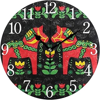 SUABO 馬 壁掛け時計 アラビア数字デザイン スウェーデンのダラ ラウンド 壁掛け時計 リビングルーム バスルーム ホームデコレーション