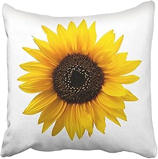 Emvency 18 x 18インチ 装飾用クッションカバー ポリエステル ホワイトリーフ ひまわり ホワイト 写真 美しい 自然色 共通クッション 両面枕カバー 正方形プリント 自宅用