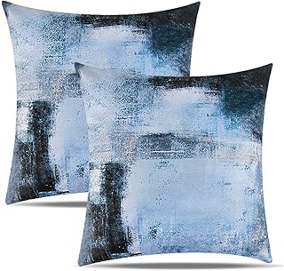 Emvency クッションカバー 4枚セット ブルーとグレー ホワイト アートアートワーク コンテンポラリー 装飾 グレー クッション ソファ 寝室 車 装飾 枕カバー ホームデコレーション 正方形 18 x 18インチ 枕カバー