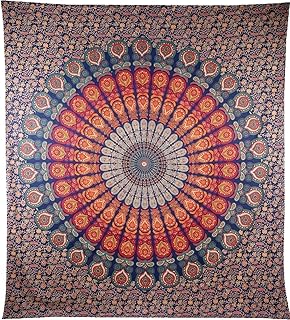 eSplanade インドのマンダラ多色タペストリー、ベッドルームタペストリーインドの多色タペストリー (ゴールド)