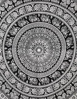 eSplanade インドの曼荼羅多色タペストリー、ベッドルームタペストリーインド多色タペストリー92 x 82インチ (黒と白)