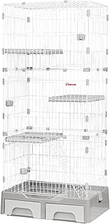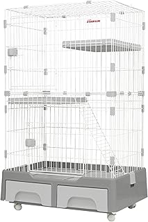 NEOLEAD ケージ 3段 ゲージ 猫ケージ キャットケージ ペット 猫 ベビー キャットゲージ キャットタワー スタジアム 収納 キャスター 付き 脱走防止 頑丈 檻 ねこ ネコケージ NL-CGT3LG (ライトグレー)