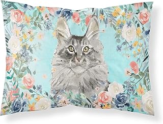 Caroline's Treasures CK3393PILLOWCASE メインクーン 春の花 ファブリック 標準枕カバー スタンダード マルチカラー
