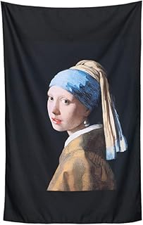 ND 真珠の耳飾りの少女 ヨハネス・フェルメール 青いターバンの少女 絵画 カラフル インテリア タペストリー 名画 オンライン飲み会 インテリア 布 テレワーク 背景 おしゃれ (ブラック)