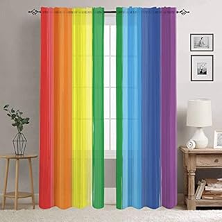 Manerly シアーカーテン ベッドルーム/リビングルーム用 レインボーカラーペイント スプラッシュプリント ウィンドウカーテン 幅54 x 長さ84インチ 2パネル