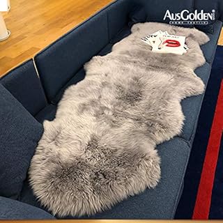 AusGolden 本物のオーストラリアシープスキンラグ ダブルペルト 厚さ3~5インチ フラシ天ふわふわ椅子カバー シャギーソフトシープスキンウールエリアラグ ファアラグ ベッドルーム/リビングルーム用 豪華なフロアマット