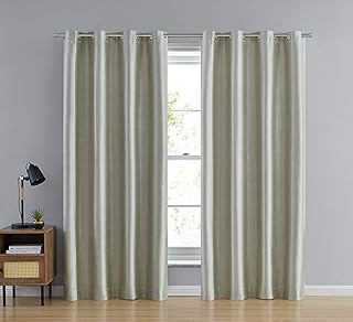 HLC.ME Blake フェイクシルク 100% 完全遮光 断熱 省エネ 保温/保冷 ショートグロメットカーテン ベッドルーム&リビングルーム用 2パネル(幅52x長さ84インチ) ベージュ