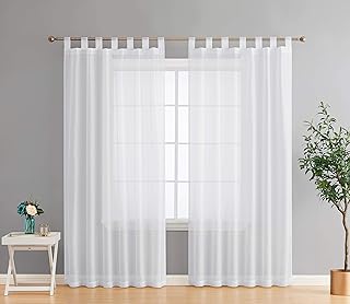 HLC.ME アディソン セミシアーライトフィルタリング 透明タブトップ 軽量 フロアレングス ウィンドウカーテン ベッドルーム&リビングルーム用 2パネル(54 x 84インチ、ホワイト)