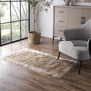Tangsoo ソフト ふわふわ エリアラグ ベージュ フェイクシープスキン ファーラグ シャギーファーラグ 寝室用 ふわふわカーペット 子供部屋用 ファジーフロアラグ プラッシュファーラグ リビングルーム用 2x4フィート (長方形、ベージュ)