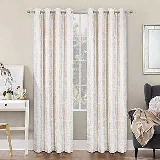 Lokiitex 刺繍グロメットセミシアーカーテンジオメトリ、ベッドルーム、リビングルーム用(2パック、幅54 x 長さ96インチ、ホワイト)