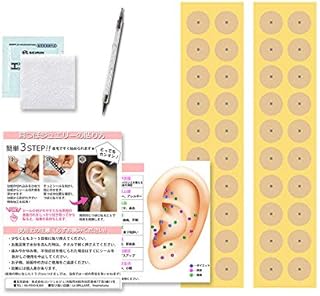 【耳つぼ スターターキット 4点セット】耳つぼシール お試し 耳つぼ 耳ツボシールダイエット チタン粒 肌色 (肌色チタン粒, つぼ押し)