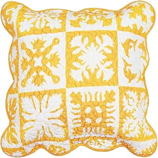 ハワイアンキルト調 キルト クッションカバー サンフラワー (中材は別売) (イエロー, 45×45cm(クッションカバー))
