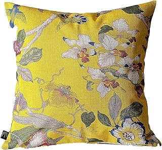 Kuai クッションカバー 45cm 花柄 オリエンタル アンティーク シノワズリ アジアン 北欧 インテリア ポリエステル イエロー (45×45cm)