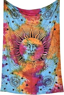Psychedelic Celestial Sun Moon Stars Tie Dye Tapestry, Hippie Hippy Wall Hanging, Indian Tapestry, Sun-moon Tapestry, Celestial Tapestry