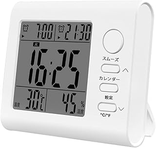 多機能 目覚まし時計 置き時計 非電波 デジタル時計 ダブル アラーム クロック スヌーズ機能 温度 湿度 カレンダー表示 バックライト 電池式 卓上 置時計 白