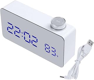 LED目覚まし時計 鏡面 アラーム スヌーズ機能 明るさ調整可 温度表示 ナイトモード 回転ノブ 大画面