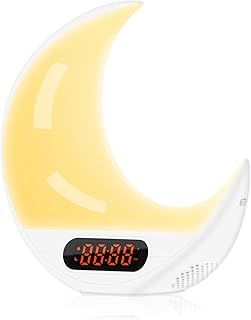 mooas サンライズ ウェイクアップナイトライト 光目覚まし時計 アラーム&スヌーズ機能 5色ナイトライト 自動変色 タイマー付き常夜灯 光の刺激を与える日の出効果 7種類の自然音アラーム 音量調節可能 USB駆動型