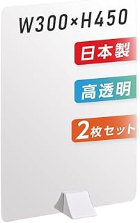 アクリル板 よりも割れにくい PET板 パーテーション デスク用パーテーション W300mm×H450mm 透明2mmPETパネル 飛沫防止対策パーテーション ステンレス製脚付き 衝立 仕切り板 居酒屋 飲食店 食事 学校 病院 角丸加工 日本製 pet2-absd-3045-2set (W300mm×H450mm 2枚)