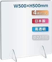 アクリル板 パーテーション アクリルパーテーション デスク用パーテーション アクリルパネル 飛沫防止対策アクリル板 衝立 仕切り板 居酒屋 飲食店 食事 学校 病院 角丸加工 板厚3mm 日本製 jap-r5050-4set (W500mm×H500mm 4枚)