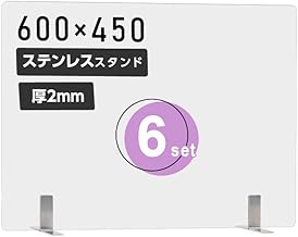 アドアプス通販 パーテーション PET軽量パーテーション デスク用パーテーション 2mmPETパネル 飛沫防止対策パーテーション ステンレス製脚付き 衝立 仕切り板 居酒屋 飲食店 食事 学校 病院 角丸加工 日本製 pet2-s6045-6set (W600*H450mm 6枚)