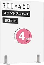 アドアプス通販 パーテーション PET軽量パーテーション デスク用パーテーション 2mmPETパネル 飛沫防止対策パーテーション ステンレス製脚付き 衝立 仕切り板 居酒屋 飲食店 食事 学校 病院 角丸加工 日本製 pet2-s3045-4set (W300*H450mm 4枚)